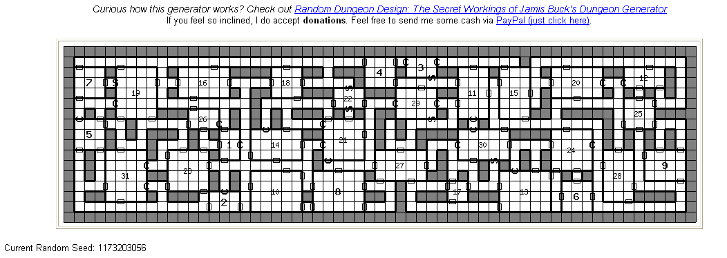 出来上がったダンジョンの癖というか雰囲気から見てコンピュータゲームのためのアイディアソース用というよりはテーブルトーク用のシナリオのにおいがする。D&Dとか、ああゆうゲームの大半をインドアで過ごすTRPGのダンジョンといった感じ。でもダンジョンシナリオはMAP自作して初めて楽しいんじゃないのかなぁ?自動生成で済ましちゃおうって人はそもそもゲームマスターなんかやらないひとだとおもうのだが…