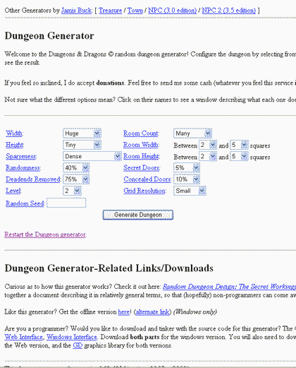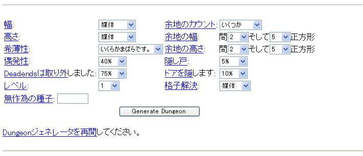 ダンジョンジェネレータというなんかネタcgiツールを発見。