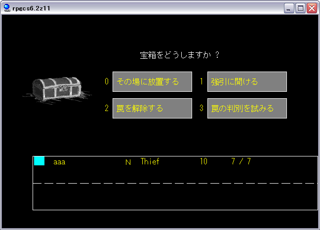 ただ…とりあえず獲得アイテム無しの設定のときでも「宝箱をどうしますか?」画面(からっぽの宝箱)が出るのはさすがにいらないなぁ。