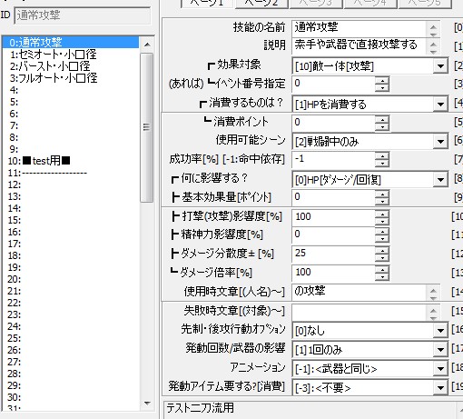 武器のコマンド設定欄を使って武器攻撃用のコマンド追加。