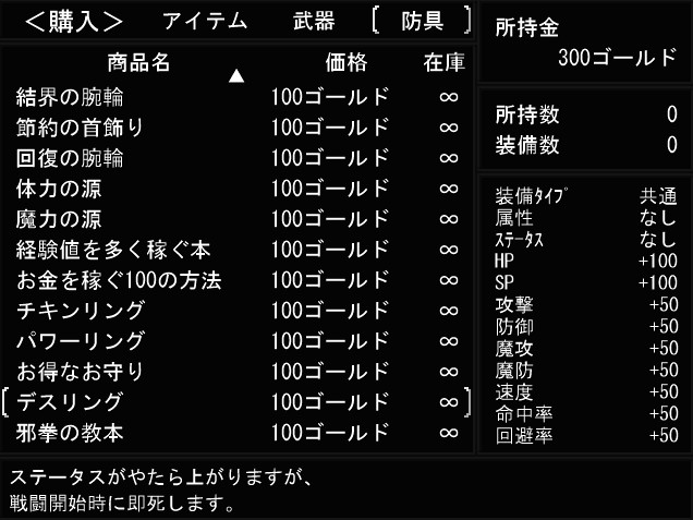 かいものする段階で装備による能力の増減がわかるというのは便利というか親切すぎるというか。