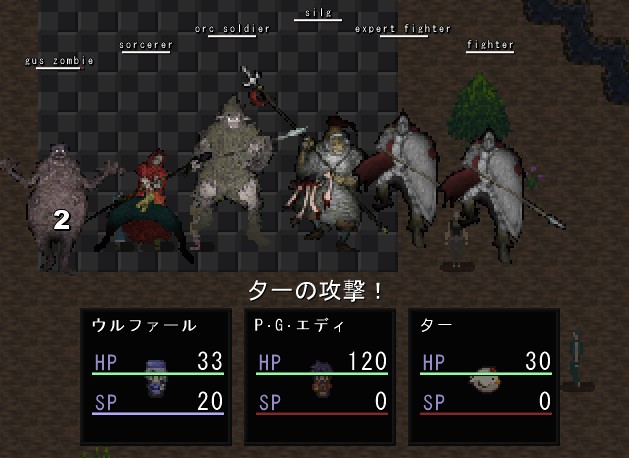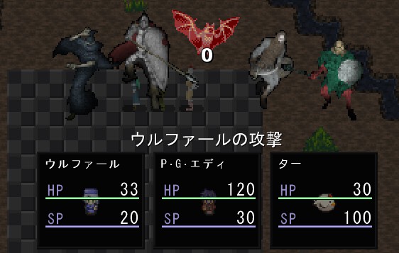 がわからないと、一から作りなおす必要がある所と今までのものを流用できるところとの境界がわからないということで、まずはDungeonsの敵キャラ、技能、コマンドをそのまま流し込んでみて、その戦闘を通していろいろ実験していきたい。