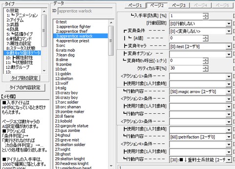 案の定、敵個別データに関しては入力欄がずれてるのと使用しなくなった変数(アクション条件の[0]とか)などの関係からか、そのまま導入は無理だったようだ。
