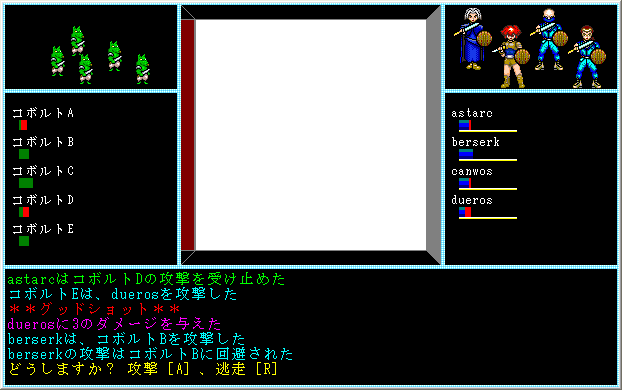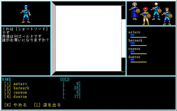 戦士B(berserk)は最初金持ちだったので調子に乗ってレザーアーマー買ってしまったら武器買う金がたまらないというしょっぱいことになってしまった^^;
