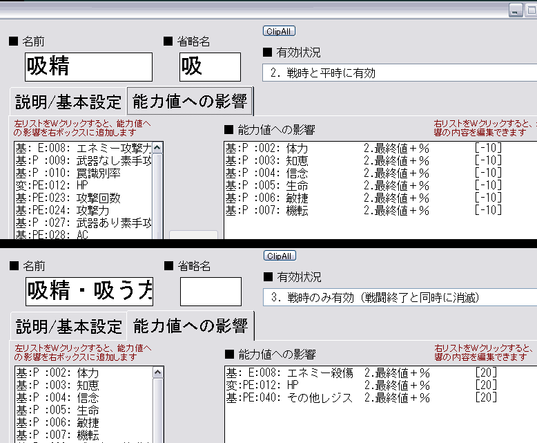そこでエナジードレインされた側には特性値を低下させるステートを貼り付け
