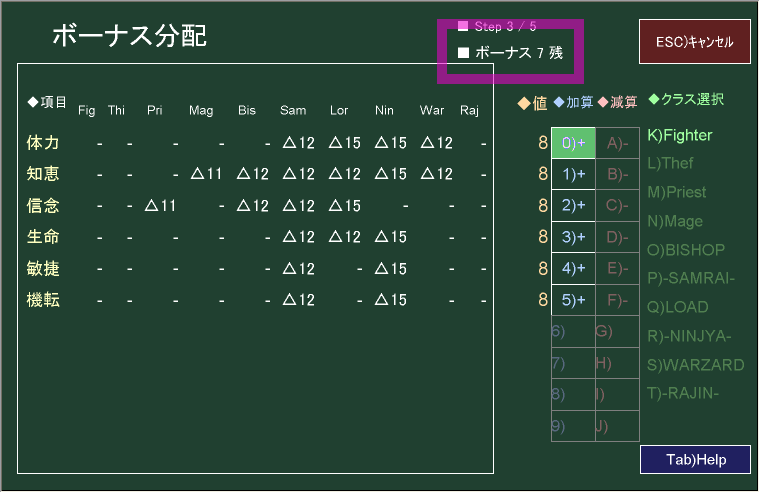 この「能力値ボーナス」あたりの操作はけっこう複雑だ。