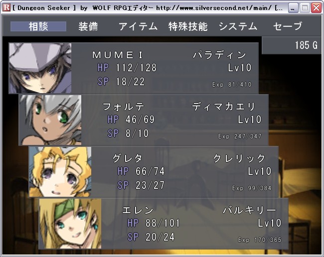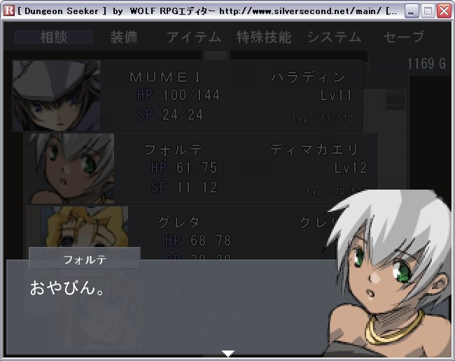 これらはダンジョンシーカーの仕様なのかウディタの限界なのかはまだわからない。