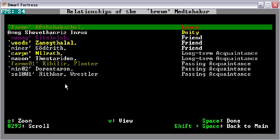 ドワーフ同士の人間関係がこのゲームにはあるらしく、そのチェックをしていたら、こんな