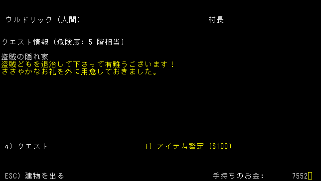 最初に受けることが出来るクエストは「盗賊の隠れ家」。