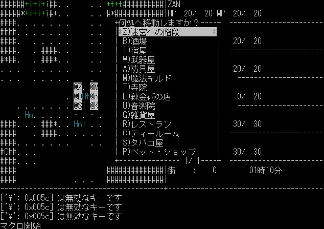 街から迷宮入り口までを1キーでやれたらと思い、早速試してみる…