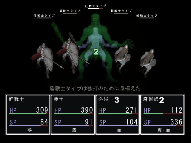 本来ならリジェネートとか狂戦士化とかは元からモンスターに持たせておきたいステータス異常なのだが、基本システムに手を加えずにいるなら戦闘が始まってから1ターン消費させてくっつけさせるしかない。