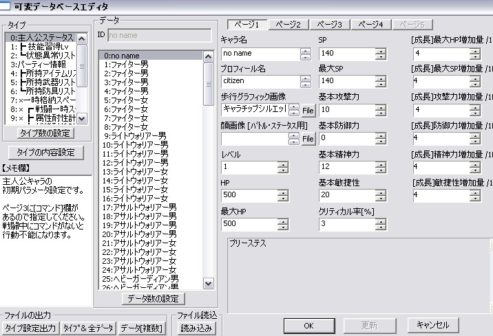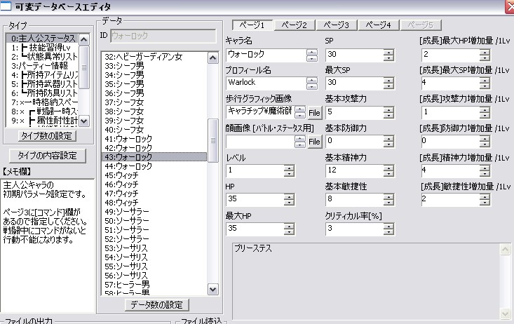 システムDBにクラス分だけ作ってそのデータを吸い出して可変DBの主人公データに代入したほうが楽だった事に気づくはめに。