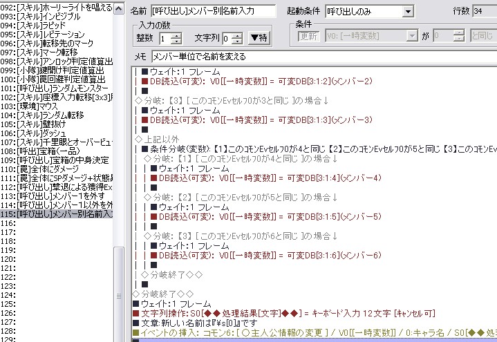 そこで主人公単位ではなくメンバー単位で名前変更できるコモンイベントを組むことに…