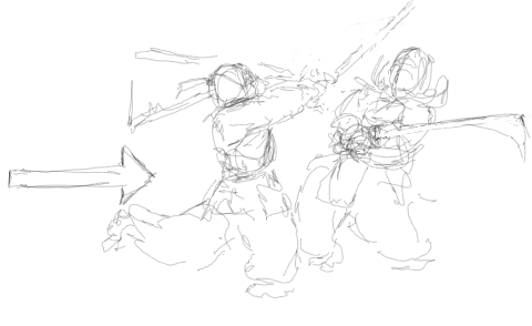 3メートル程度の短距離移動なら、だんぜん移動のほうが早いですよね。野外でポン刀の模造刀を振り回したことがあるんですが(あぶねー女だ)、私の筋力では、移動のほうが数段楽チンだった気がします。一秒間に3メートル移動できても、1秒間で1回攻撃するのは無理かなあと。1キロ・1メートルの鉄の棒を振り回して、その遠心力を制御するのに結構たいへんで。もっと筋力ある人なら別だろうし、鎧外人ならわけないのかもしれないけど。